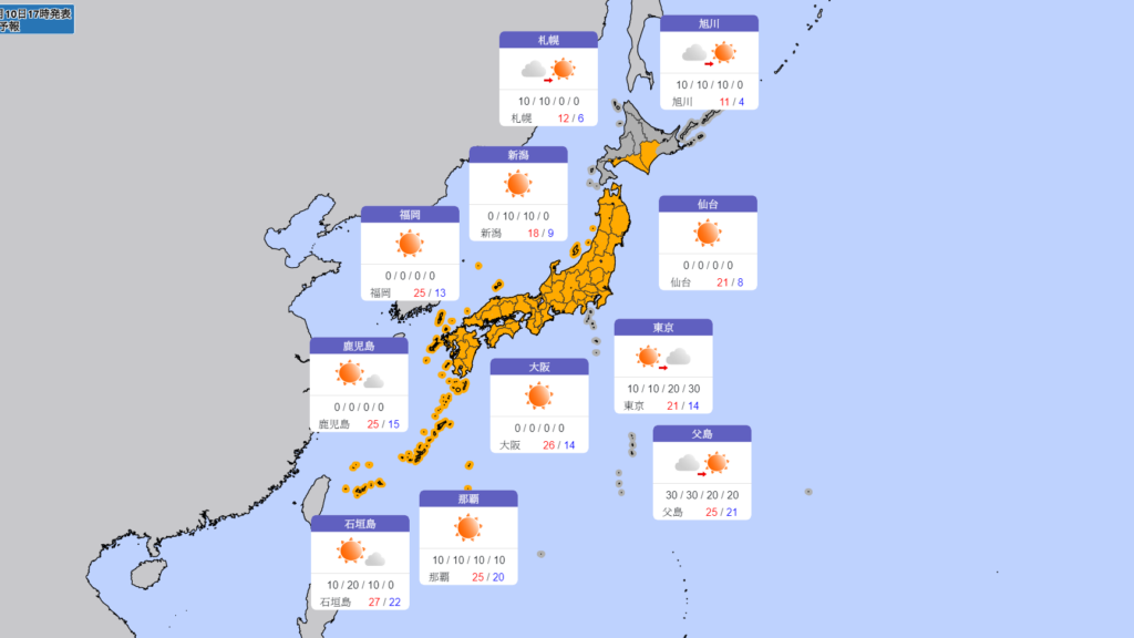 - 気象庁:公式な天気予報とともに、現在の温度や降水確率なども確認できます。