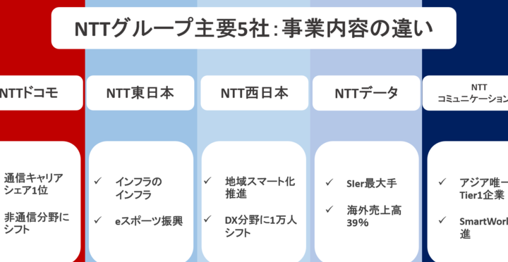 このように、NTTグループは多様性と革新性によって形成されており、それぞれの子会社が果たす役割によって全体として一層強固になることを目指しています。それぞれ異なる成長戦略や市場適応能力から得られる知見は、今後ますます価値あるものとなるでしょう。