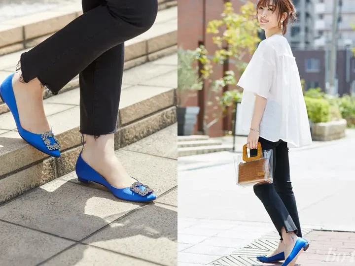この組み合わせは、新しいくつと青い空というテーマにもマッチし、高級感あるスタイリングになります。