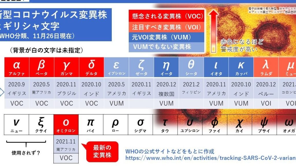 以下は、最近確認された主要な変異株の一覧です: