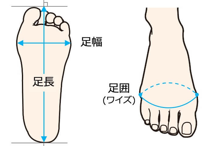 - 幅: 足の最も広い部分(通常は母指球付近)の横幅。