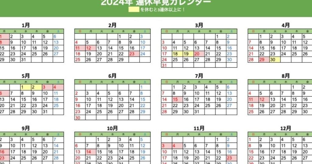 2024年度に祝日はいくつありますか?カレンダーの概要