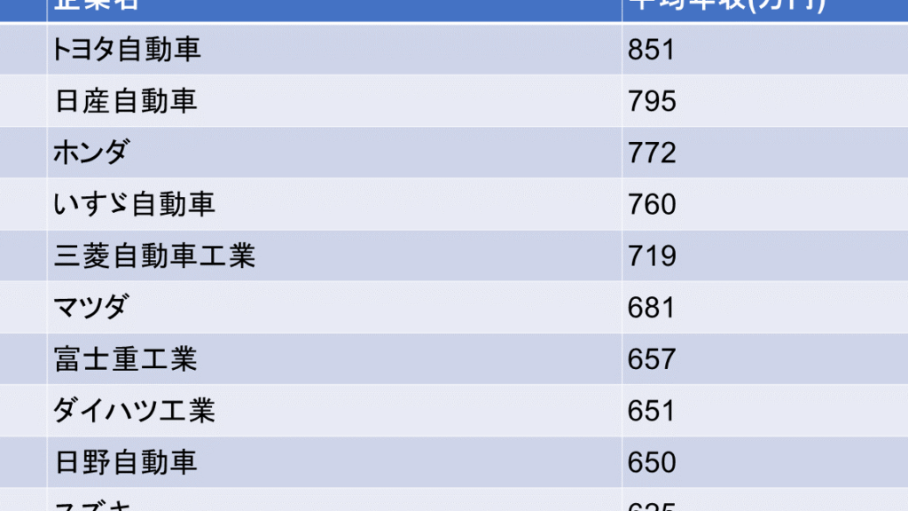 主要な自動車メーカー