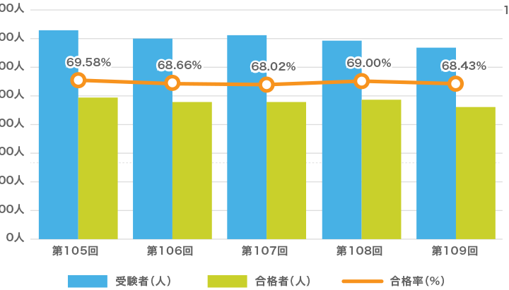 | 年度 | 受験者数 | 合格者数 | 合格率 (%) |