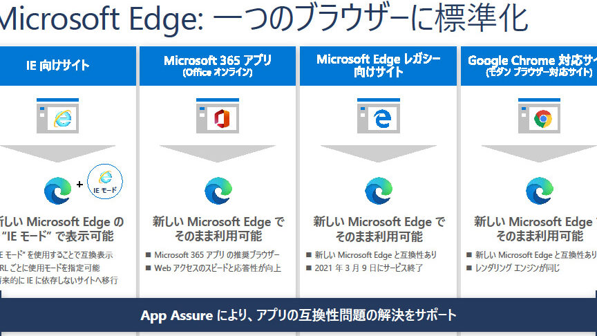 - 管理者設定: 企業向けにはIT管理者が特定のサイトやアプリケーションをIEモードで開くよう設定できる管理機能も備わっています。これによって運用効率が向上します。
