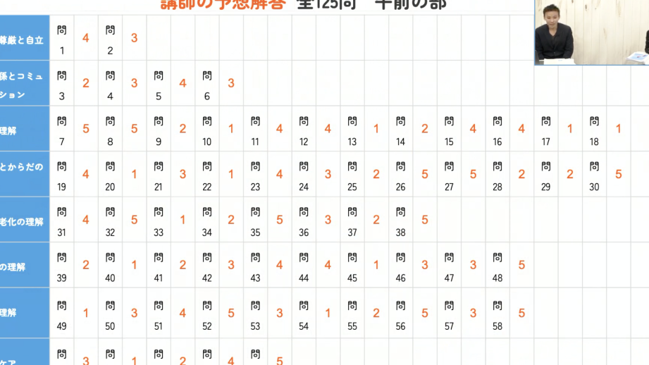 - 科目: 基礎知識(法律・倫理)、技術(介護技術)、実務など