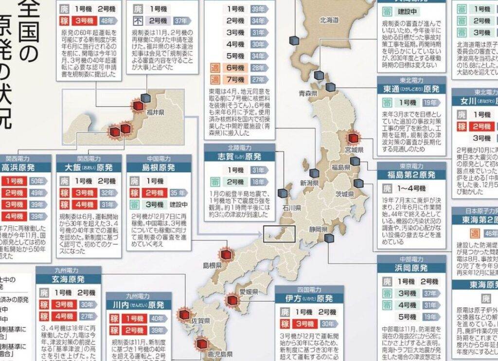 - 中部電力・伊方原子力発電所:過去には一時的に運転再開しましたが、その後の規制強化によって再度停止しています。