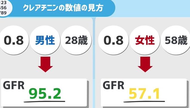 - 計算式: CKD-EPI式やMDRD式と呼ばれる公式が一般的に用いられます。これらの公式では、年齢、性別、人種、およびクレアチニン濃度が入力されます。