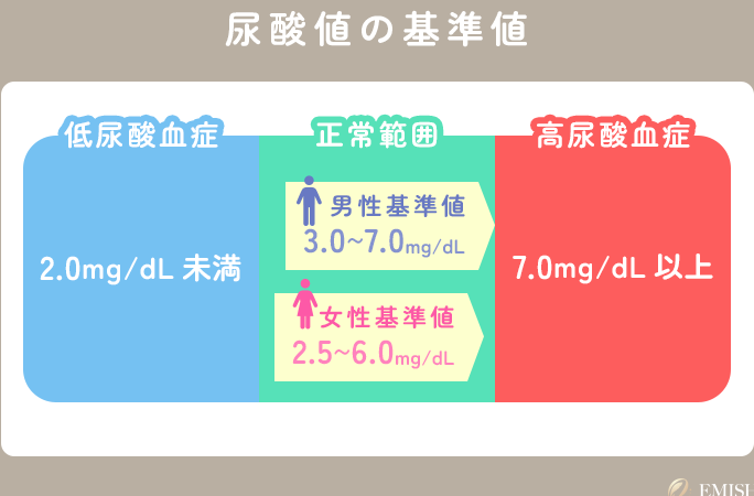 一般的に、尿酸の正常な範囲は以下の通りです: